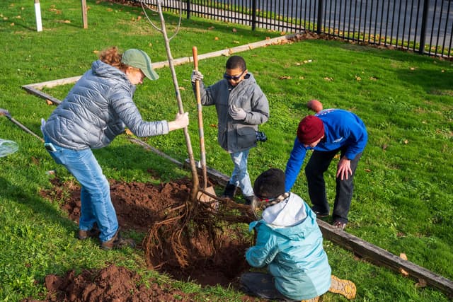 Planting trees not only adds beauty and shade to the property but also contributes to urban cooling, cleaner air, and habitat for wildlife.